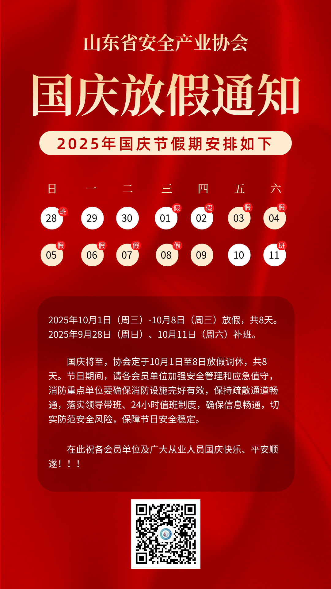 协会2025年国庆放假通知